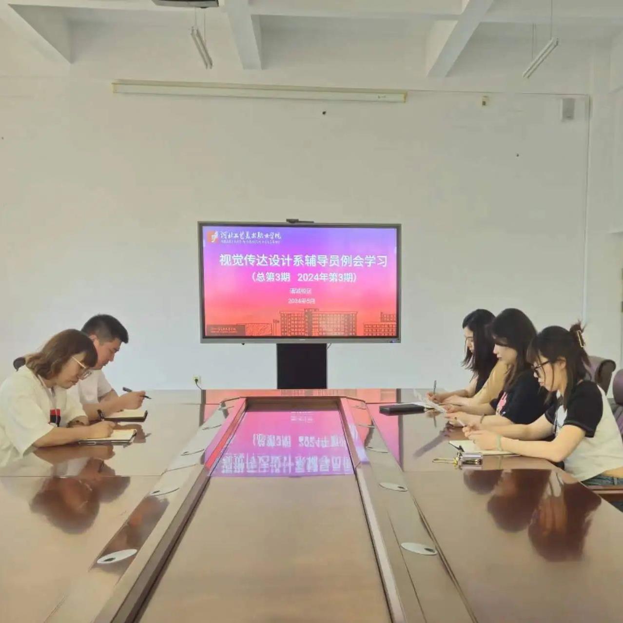2024年5月27日,视觉传达设计系满城校区全体辅导员召开第三次集中理论学习会,系党总支师生一支部书记赵骄阳主持会议,系部满城校区全体辅导员参加。