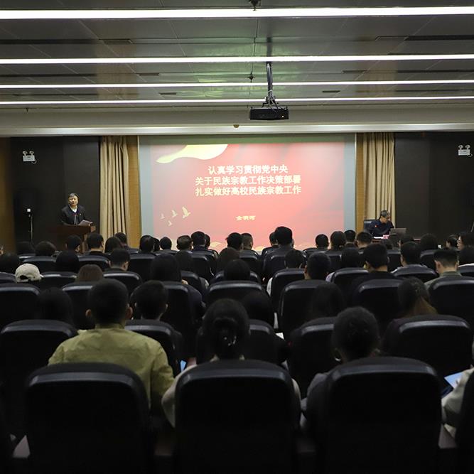 为深入学习贯彻习近平总书记关于宗教工作的重要论述,强化师生铸牢中华民族共同体意识,10 月 29 日,学校党委统战部联合保定市民宗局举办“铸牢中华民族共同体意识,系统推进我国宗教中国化”主题活动。保定市民宗局党组成员、副局长孙联伟,竞秀区委常委、统战部长贾琇清一行参会,学校党委副书记赵云耕,党委委员、副校长卫进东陪同,学校各党总支、党支部负责人,团总支书记及辅导员、班主任等百余人参加。活动现场设置民族宗