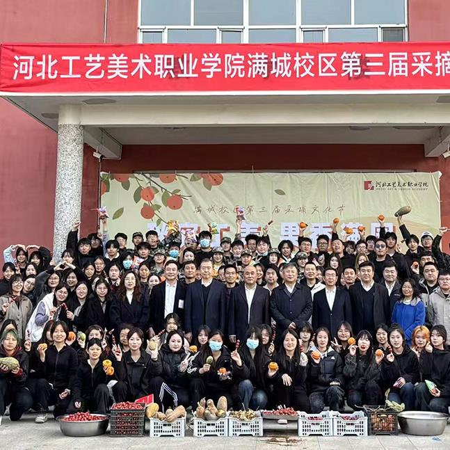 11月1日,河北工艺美术职业学院在满城校区举办了以“秋实工美,果香满园”为主题的第三届采摘文化节。学校党委书记孙斌、党委副书记赵云耕、纪委书记王立新、副校长卫进东出席活动,各系、部师生代表参加活动。在师生们的笑语与期盼中采摘活动欣然启幕!今年采摘的“主角”:山楂、柿子、南瓜、洋姜等分工协作井然有序有的挥竿采收,有的分拣筛选逐枝排查满载而归共享采摘乐趣挑选、清洗、串串、熬糖酸甜糖葫芦新鲜出炉劳有所得