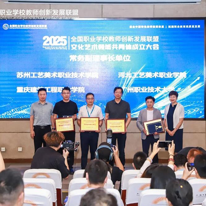 9月26日,全国职业学校教师创新发展联盟文化艺术领域共同体成立大会在上海工艺美术职业学院隆重举行。我校校长张广军应邀带队出席大会,并代表学校接受共同体常务副理事长单位授牌。此次当选,是对我校在文化艺术职业教育领域实力与行业影响力的充分肯定,也赋予了我校参与共同体决策、引领发展的重要职责。该共同体由全国329所院校和42家企业共同组成,涵盖文化艺术类中高职院校、应用型本科及行业重点企业。张广军表示,学校将