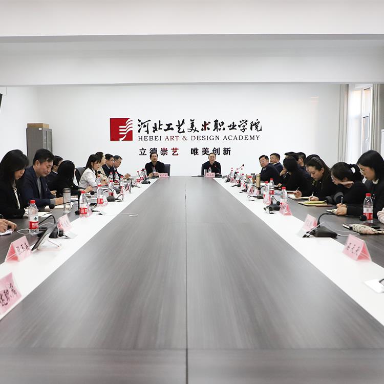 12月29日,天津创意星球网络科技股份有限公司董事长穆虹、天津商务职业学院广告学院院长赵世勇一行到访我校艺术实践中心,就全国数智艺术与设计创意行业产教融合共同体2025年的工作计划进行交流。我校校长张广军、党委副书记赵云耕以及相关部门负责人参加座谈。河北八零电商董事长、瞻岳文创主理人张倩同步参加会议。党委副书记赵云耕陪同来宾参观了我校美术展览、实地考察艺术实践中心大漆制作大师工坊、金工首饰大师工坊、武强