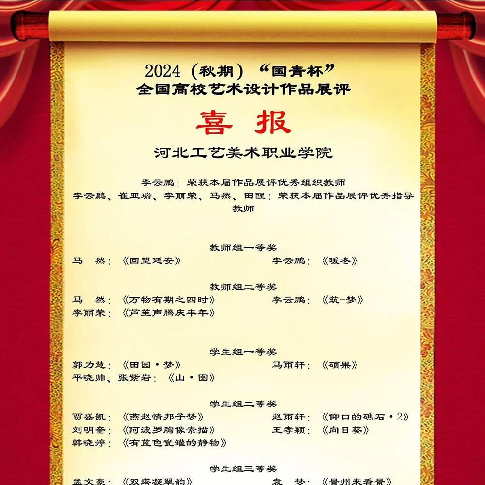 喜报 | 我校美术系师生在2024(秋期)“国青杯”全国高校艺术设计作品展中荣获佳绩