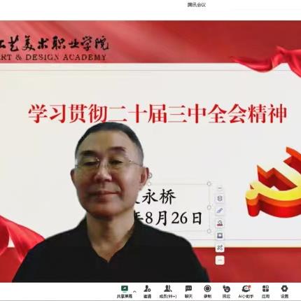 为深入推动党的二十届三中全会精神在我校落地生根,扎实引导广大青年学生深入理解、全面把握全会精神。8月26日下午,我校党委书记殷永桥于线上为师生开展党的二十届三中全会精神宣讲,学校各系师生代表共计400余人参加,党委宣传部部长王晓非主持会议。殷永桥从阐述党的二十届三中全会的涵义出发,从“二十届三中全会概况”“二十届三中全会精神的主要内容”“全面贯彻落实二十届三中全会精神”三个方面展开,围绕深刻认识党的二