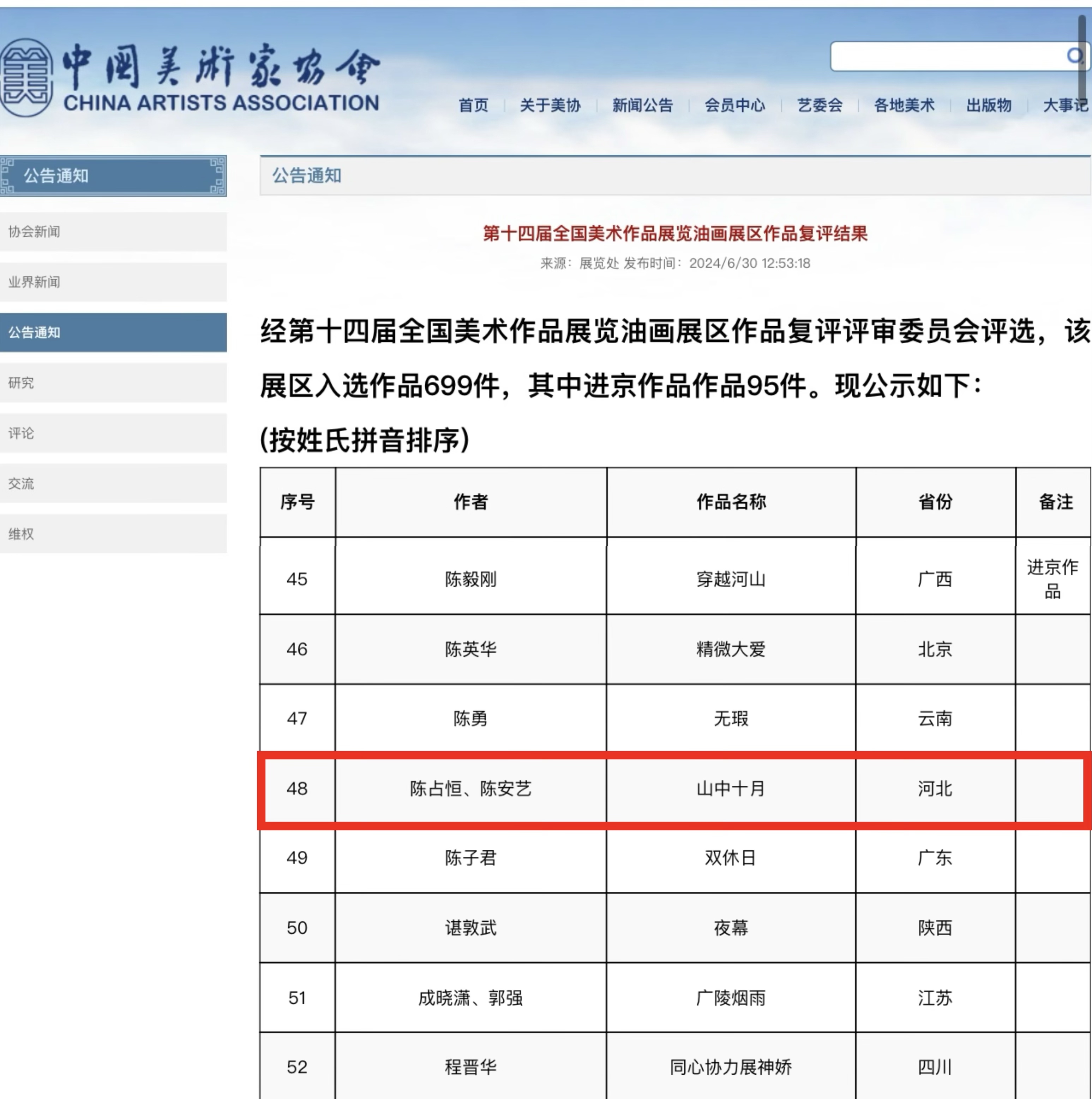近日,第十四届全国美术作品展览雕塑展区作品复评结果和油画展区作品复评结果相继公示,我校美术系教师王艺宁雕塑作品《鱼龙舞》、朱虹雕塑作品《乡村直播间》,以及陈占恒油画作品《山中十月》成功入选。全国美术作品展览简称全国美展是中国美术界最权威、规模最大的顶级展览,也是独特的国家艺术评价体系。它由文化部、文学艺术界联合会和美术家协会联合主办,1949年举办第一届,在此之后的展览流程十分严格、规范:首先,各省