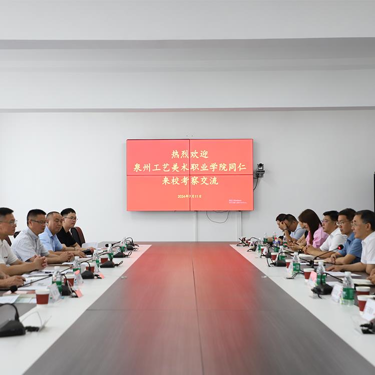 校际交流促发展,携手共进谱新篇。7月11日上午,泉州工艺美术职业学院党委书记丁峰率党政办公室、组织部、教务处、学生处、宣传部相关职能负责人一行6人莅临我校参观交流。校党委书记殷永桥,党委副书记赵云耕,副校长卫进东,相关职能部门负责人和各系部主任、教师代表陪同。殷永桥代表学校对丁峰一行的到来表示欢迎,陪同参观了我校的绘画作品展、时尚工艺文创作品展,观看绘画作品、文创作品、工艺美术产品以及非遗文化创新与