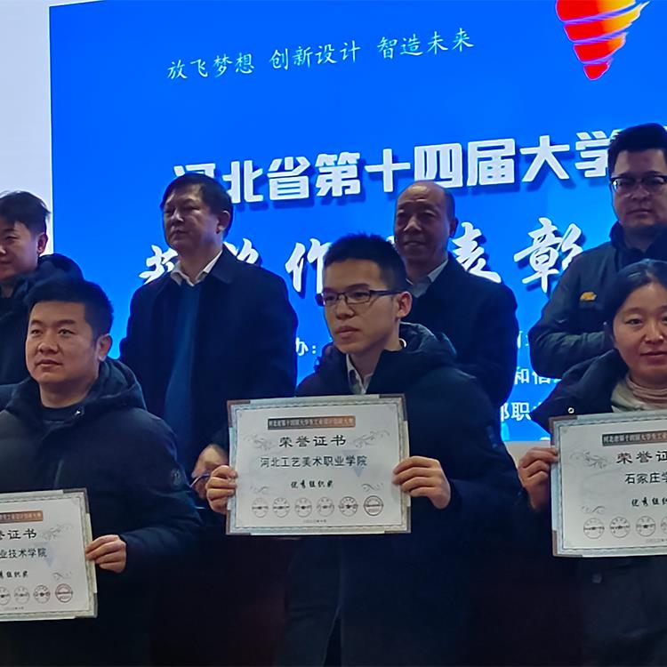 2023年12月22日,河北省第十四届大学生工业设计创新大赛获奖作品表彰大会暨闭幕式在邯郸成功举办。本次大赛由河北省知识产权局、河北省科技厅、河北省教育厅、河北省财政厅、河北省工信厅及河北省共青团委员会主办,河北省发明协会承办。我校时尚工艺系产品艺术设计专业在此次赛事中荣获优秀组织奖一项,三等奖一项、优秀奖五项。河北省大学生工业设计创新大赛赛事项目内容紧扣我省制造业高质量发展“十四五”规划,以新一代信息