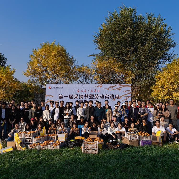 村暗桑枝合林红柿子繁10月26日河北工艺美术职业学院第一届采摘节暨劳动实践教育月在满城校区盛大开启浸染一季秋风,正是丰收时节师生戮力同心,共享采摘之乐今年的采摘节的主角主要是磨盘柿、南瓜、红薯等共计1000多斤所有的采摘果实都会分发到师生手中大家可以品尝自己亲手采摘的果实柿子红了枝头,醉了深秋由青涩到成熟点缀在树叶之间向大家发出热烈邀约秋冬交替、橙黄橘绿高悬枝头的柿子已经成为校园文化的一部分承载着同学们