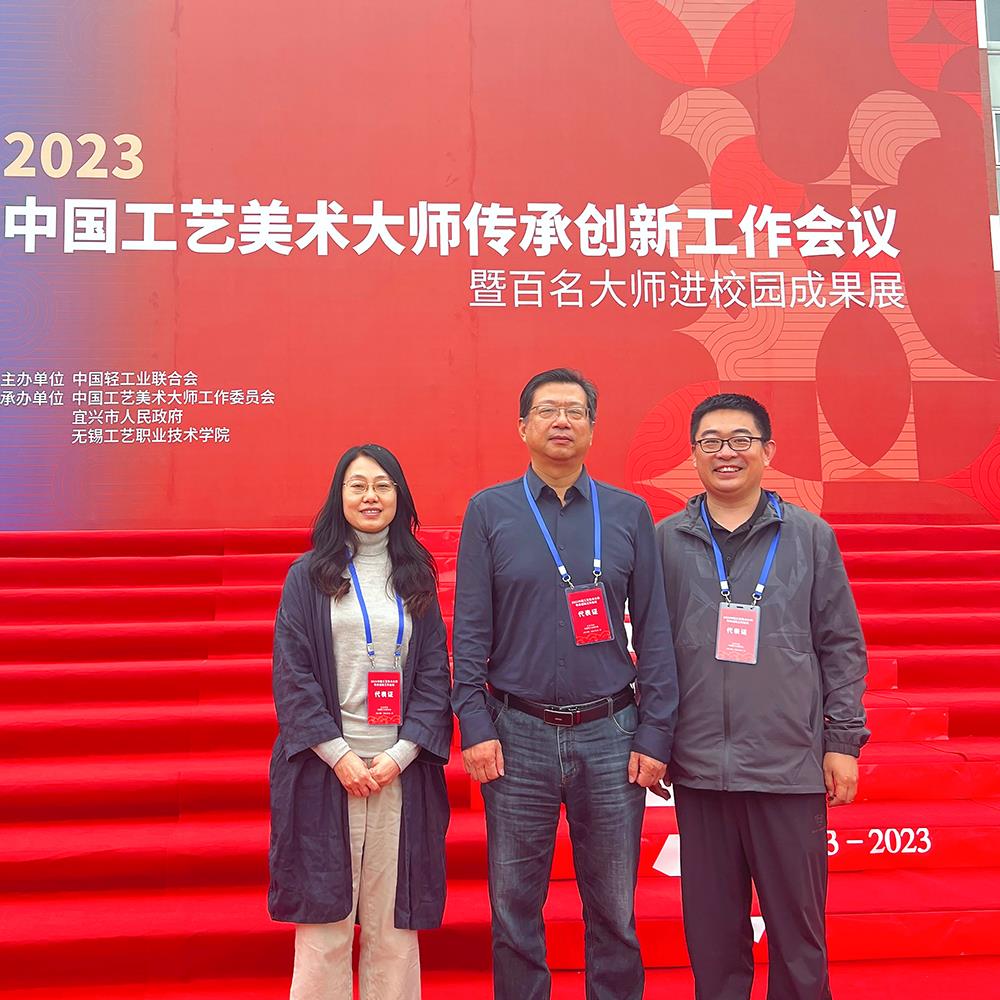 中国轻工业联合会为推动中国传统工艺传承创新,加快工艺美术人才培养和队伍建设,提升“百名大师进校园”工作水平,提高工艺美术大师传承创新基地建设质量,2023年10月26日至28日在无锡召开中国工艺美术大师传承创新工作会议,来自全国各地100余位国家级工艺美术大师和40余所基地院校代表汇聚一堂,共谋工艺美术发展大计。我院院长、博士生导师、中国工艺美术大师评委张广军教授率领鹿泉艺术实践中心和教务处相关负责人出席此次会