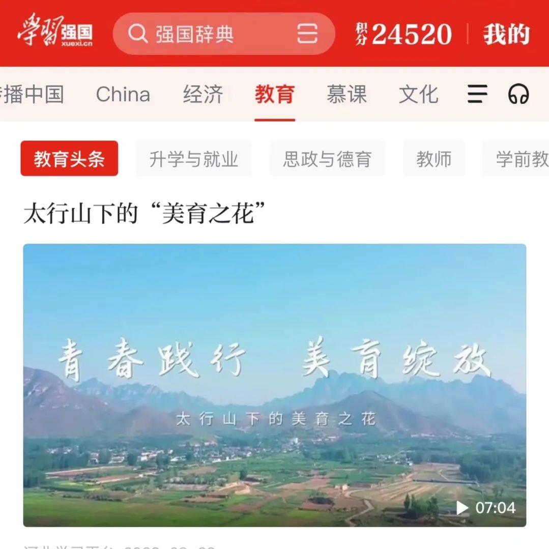 8月16日,学院制作的微视频——太行山下的“美育之花”在长城新媒体冀云客户端发布,一经推出,就受到了广泛关注。两天时间内点击量达到3.5万次。8月21日,"学习强国"河北学习平台转发了该视频。更令人振奋的是,8月22日,该视频被"学习强国"平台教育头条收录,进一步展示了我院的美育成果和影响力。该视频由学院党委宣传部组织拍摄,记录了河北工艺美术职业学院数字艺术设计系暑期社会实践队走进红色革命老区易